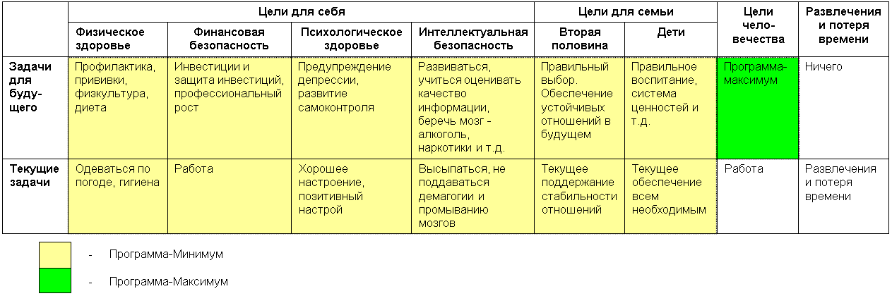 Цели человека: Программа-Минимум